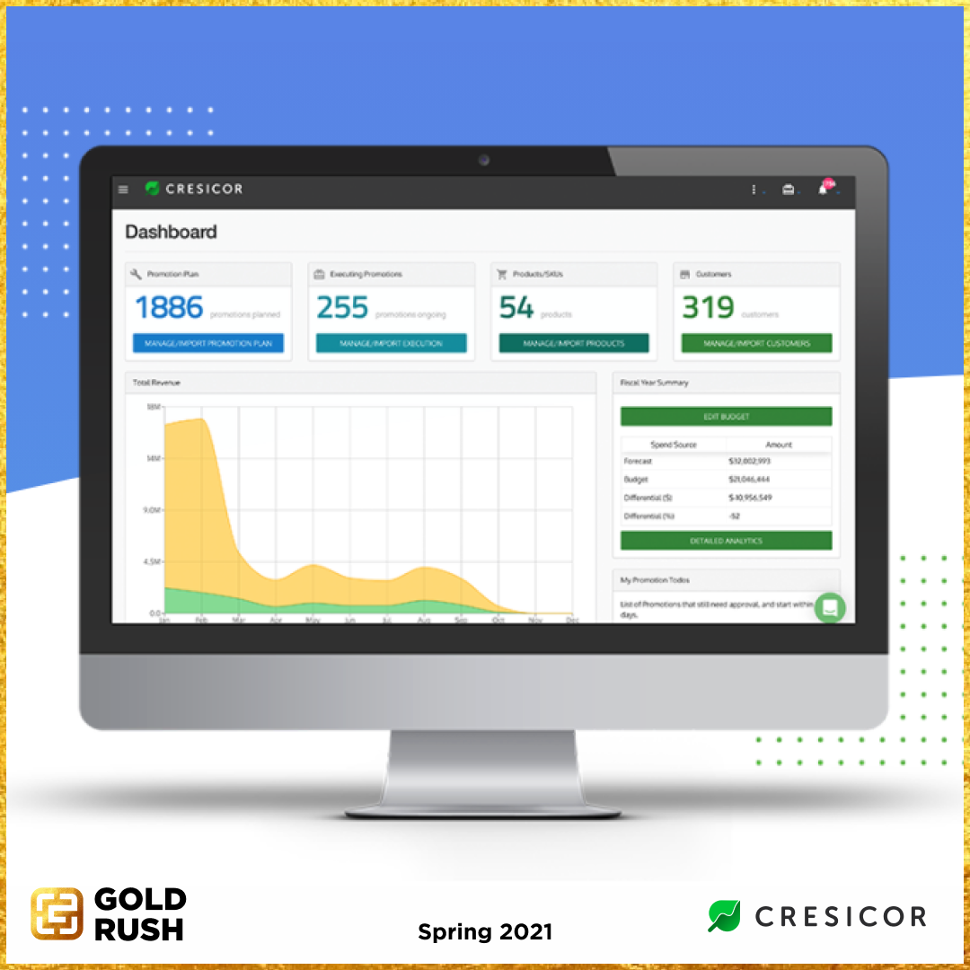Cresicor is a venture-backed startup that aims to transform trade management between manufacturers of consumer-packaged goods (CPG companies) and their retailer partners and distributors. We’re developing an analytics-rich software system that replaces the current spreadsheet workflow that CPG companies use to manage their trade.