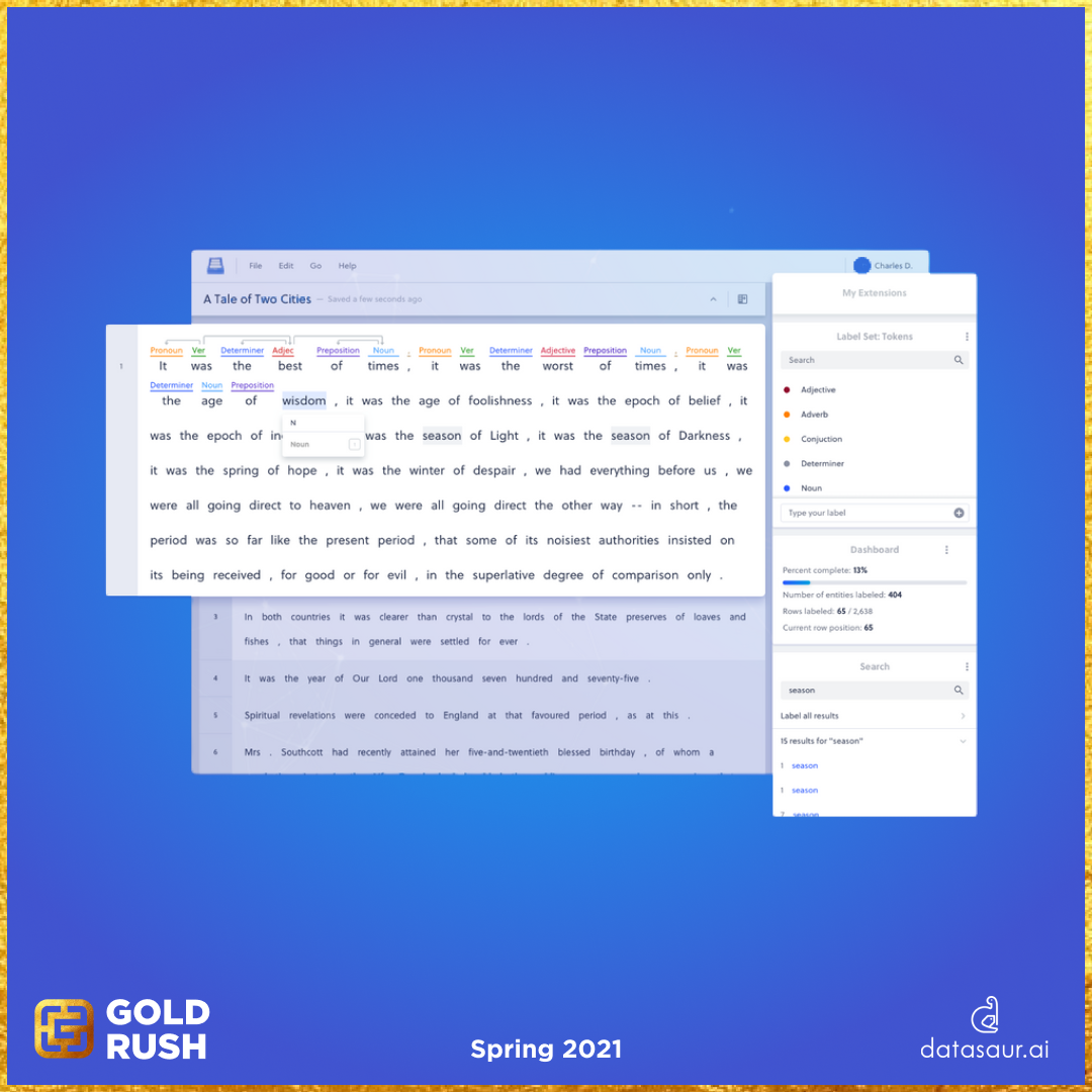 Behind every AI algorithm are vast amounts of human-labeled training examples. Organizing and labeling such data today is tedious, time-consuming and expensive. We started Datasaur to create the most intelligent, efficient and productive tools for all your data labeling needs.