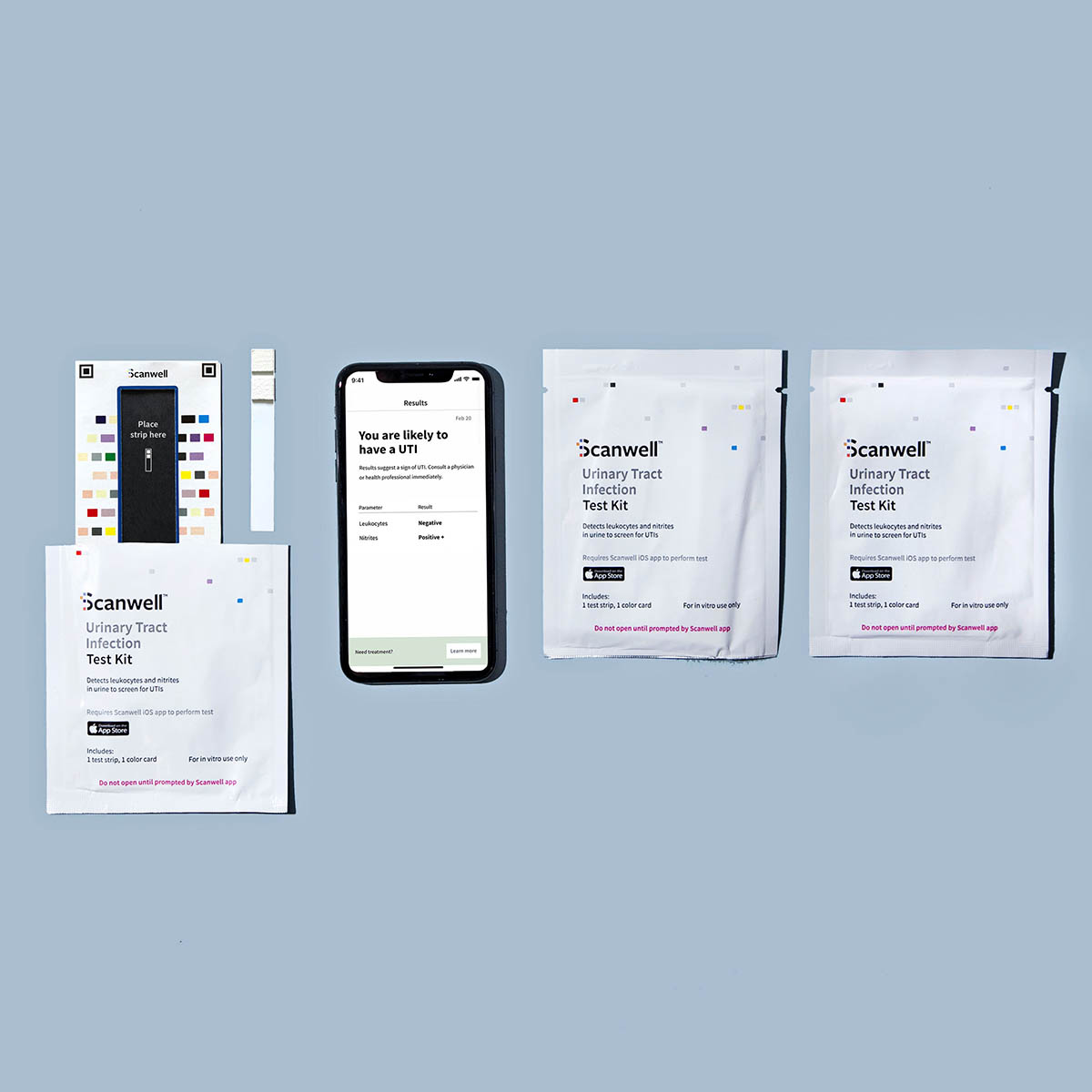 Requires Scanwell app (Android 9 or iOS 9 and up) to perform test. Includes 3 Scanwell UTI Test Kits.